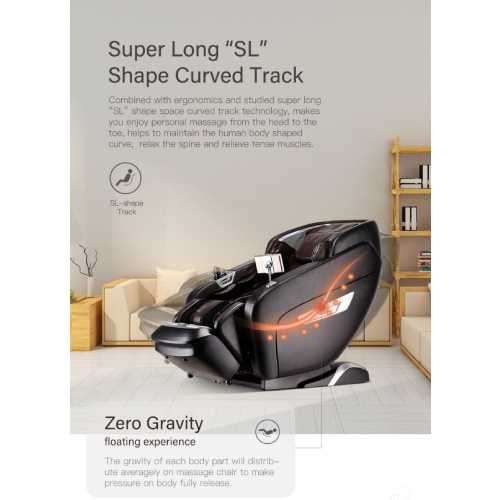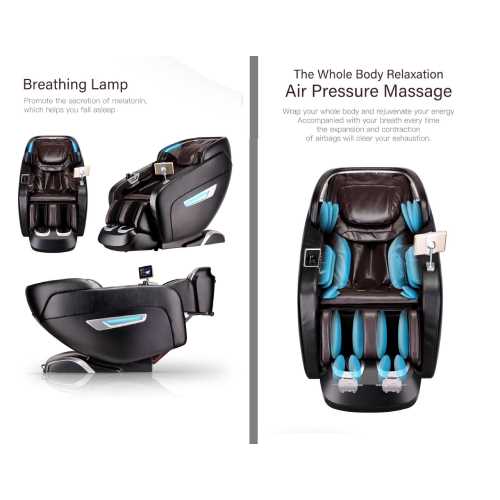 3D Intelligent Mechanical Massage Hands. Full Body Computer Scanning. Super Long “SL” Shape Curved Track. Zero Gravity. Zero Wall Space. 60 Airbags Full Body Massage. Breathing Lamp. 12 Automatic Massage Programs. 6 Massage Techniques. Shortcut Buttons & Aromatherapy Energy. 3D Wrap Around Foot Reflexology. Bluetooth Connectivity Speakers. LED Touch Screen Display. Thermal Heat Therapy. Automatic Leg Extension